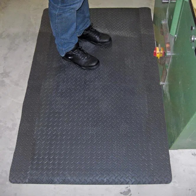 Forbedr arbejdsmiljøet med vores ergonomiske måtte med dørkplade mønster. Denne måtte reducerer træthed og tilbyder fremragende skridsikre egenskaber takket være dens teksturerede overflade. Perfekt til stående arbejdsstationer, industrielle miljøer og al